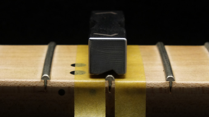 The LittleBone Fret File was designed by inventor Davide Bissoli as a compact and precise solution to help bringing frets back to their natural crown after leveling or wear. Its angled abrasive surface works only where it is needed, helping to preserve the fret center and support accurate intonation.